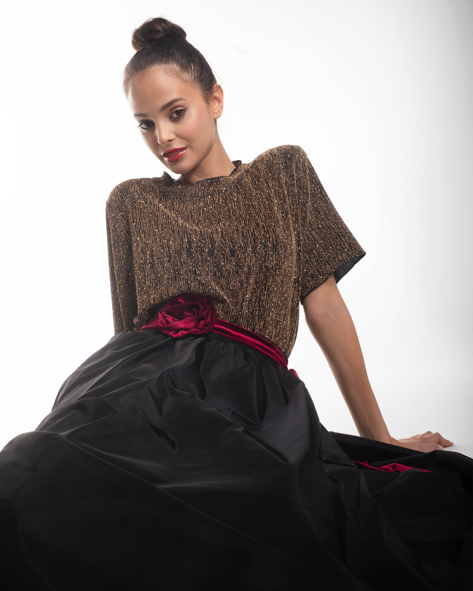 Raffinata e moderna, la gonna lunga interpreta la femminilità con una linea scultorea e dinamica; l'effetto balloon elegante e leggero è perfetto per chi ama distinguersi con stile.