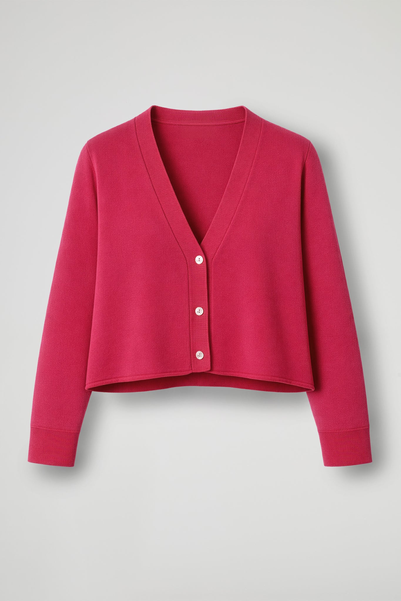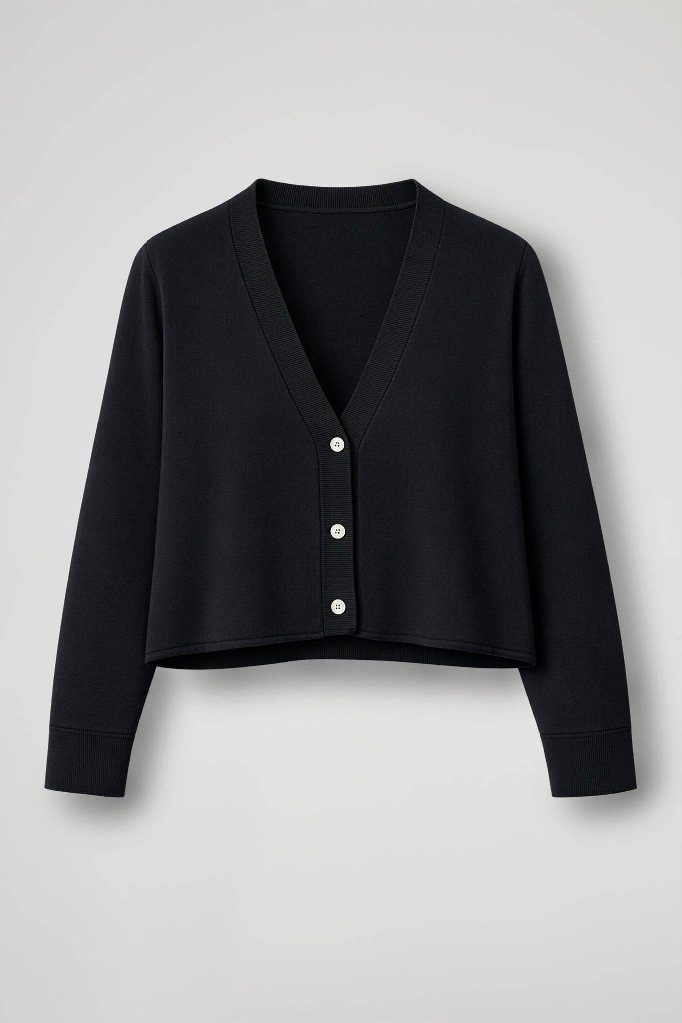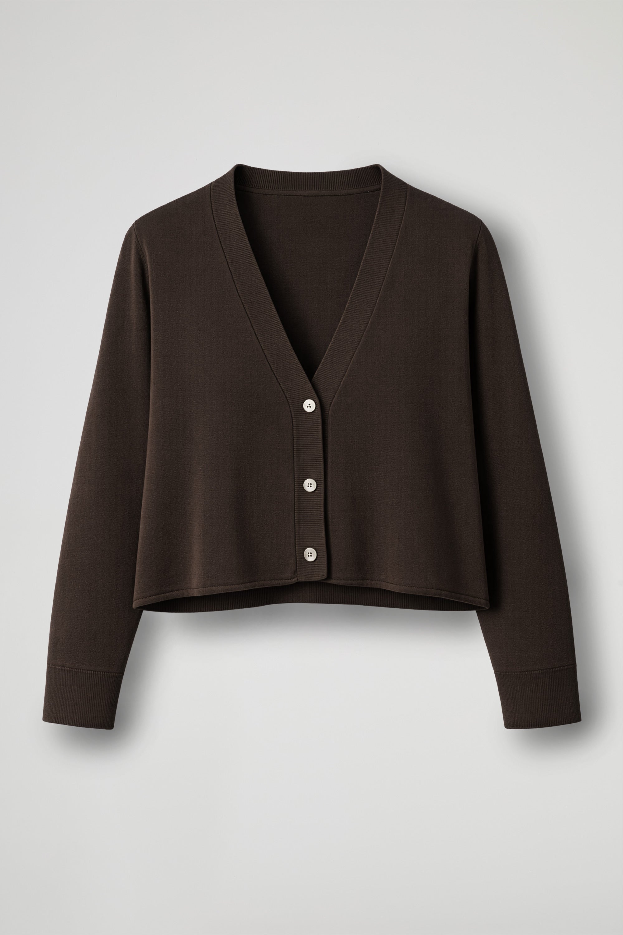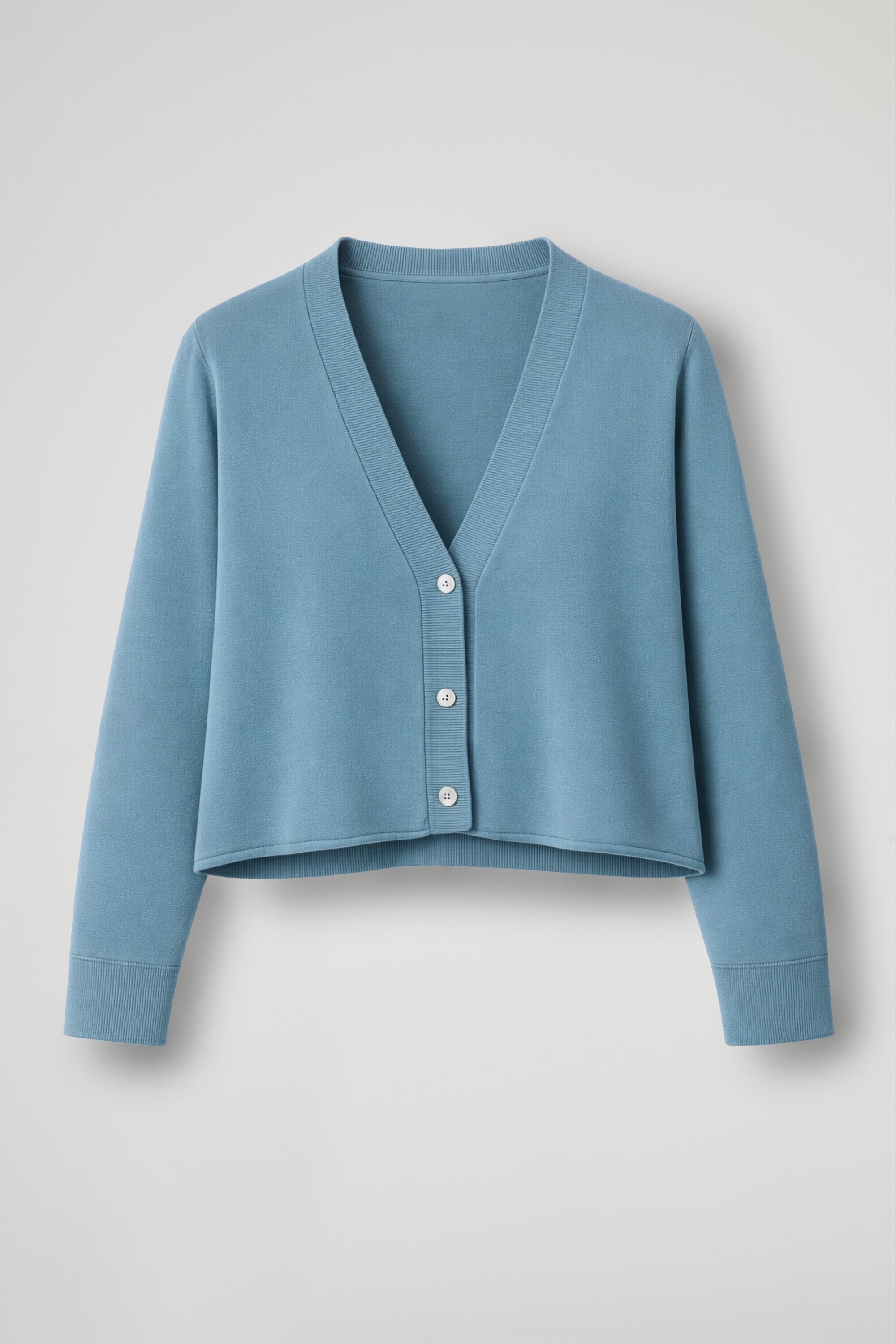 Cardigan in maglina di viscosa; la linea boxy valorizza il punto vita e slancia la figura, mentre lo scollo a V dona un’allure femminile e versatile, perfetto da indossare sia chiuso come maglia, sia aperto come coprispalle leggero.