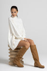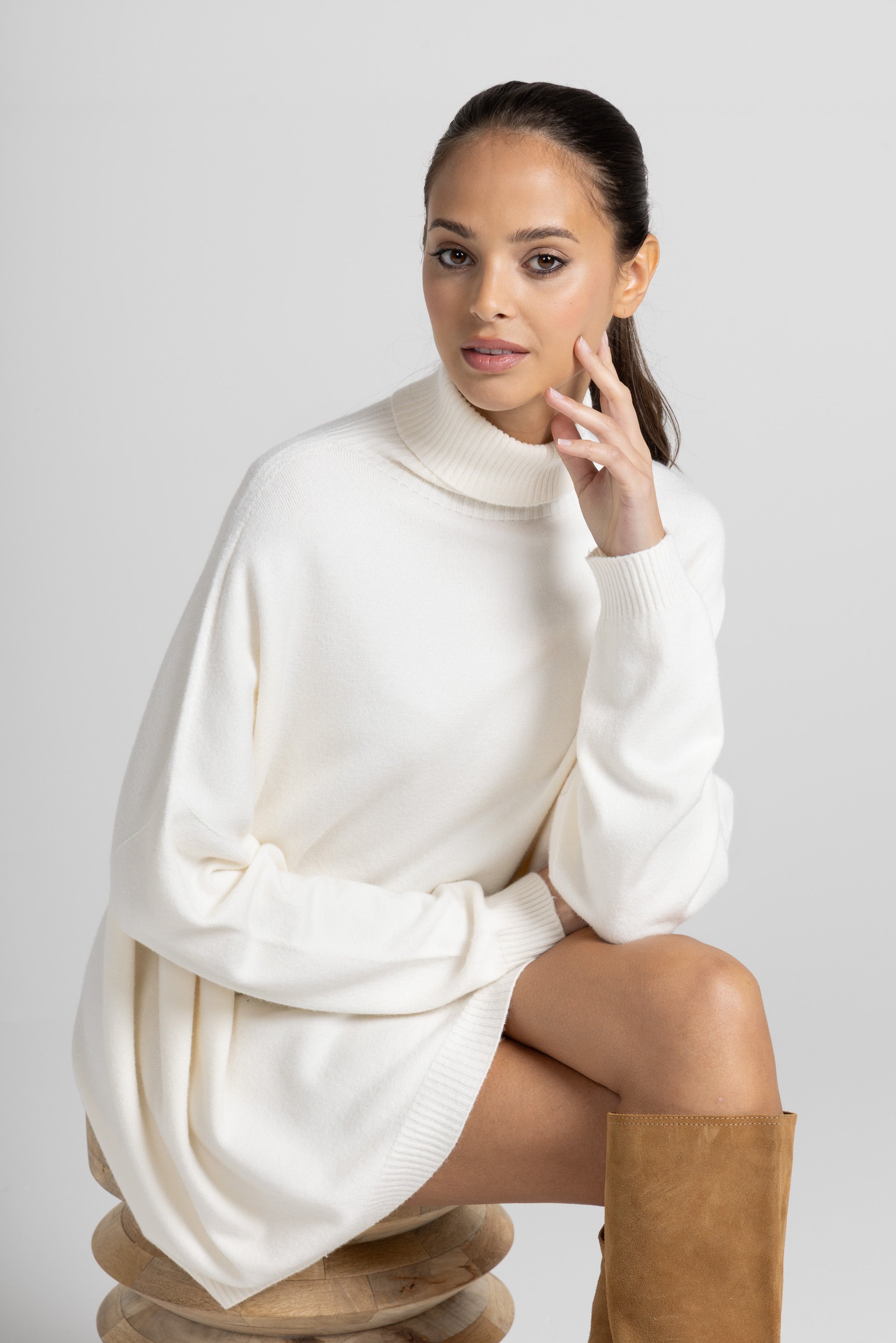 Maglia Over in morbida maglina di viscosa, eleganza essenziale e comfort assoluto si incontrano in questo dolcevita a collo alto, Il suo taglio morbido e la lavorazione pulita lo rendono un must-have trasversale: dalla quotidianità urbana al look più ricercato.