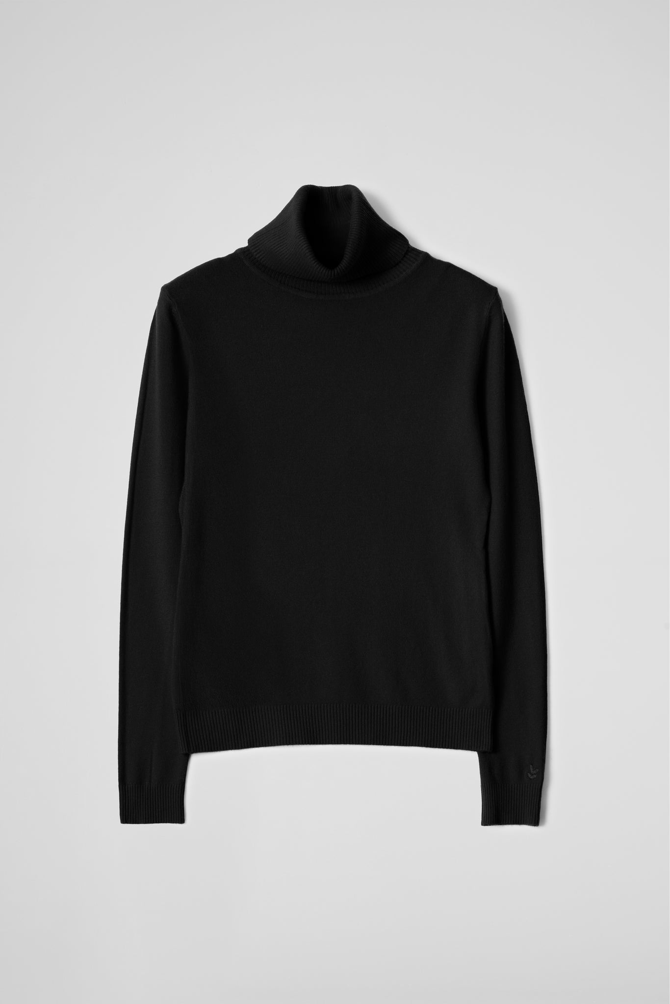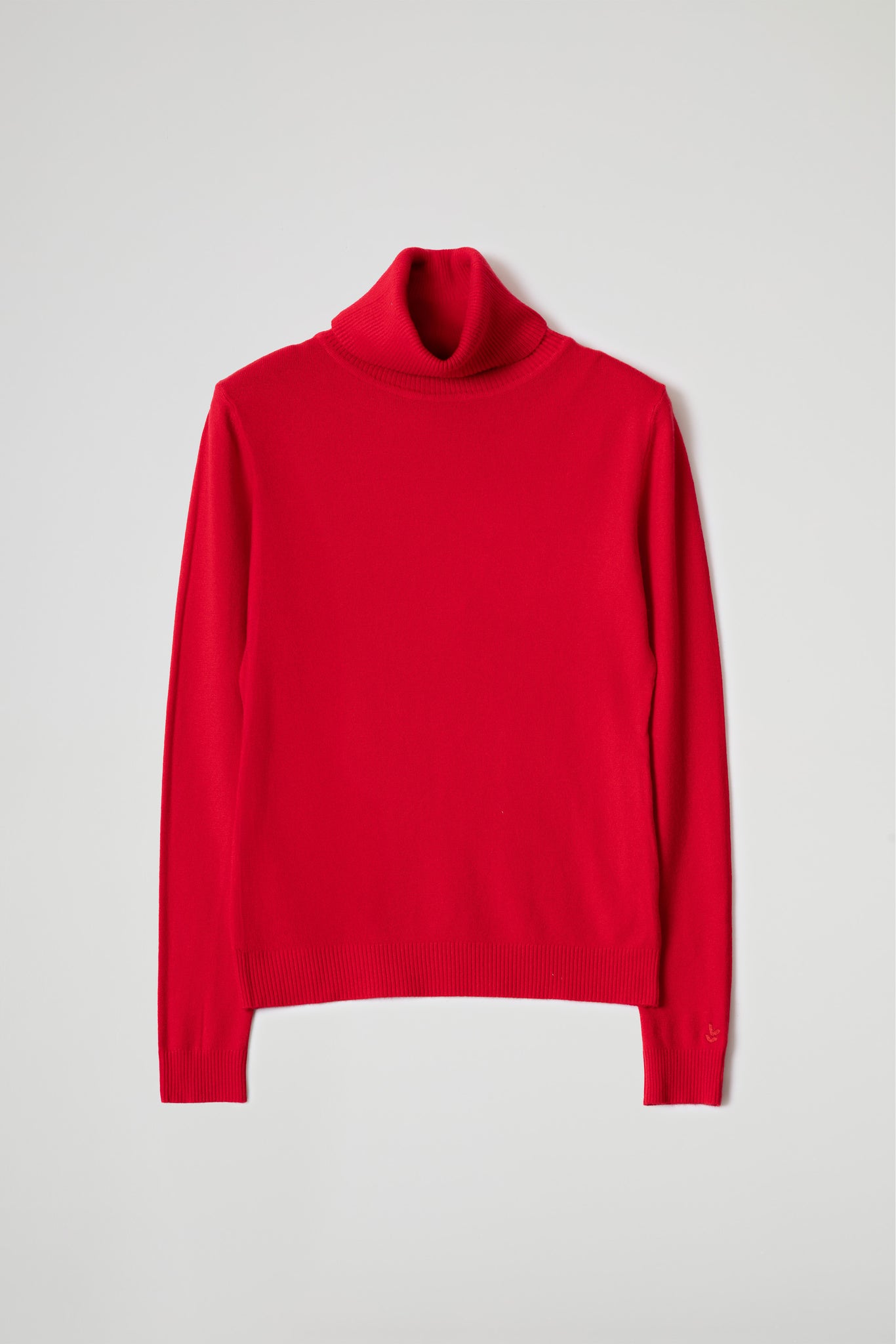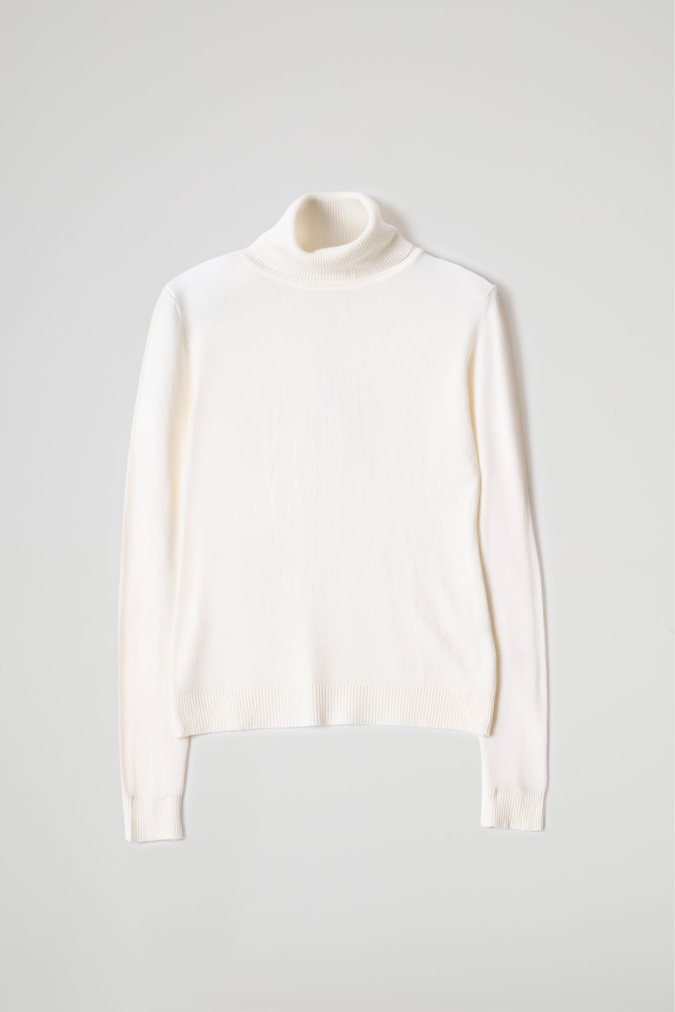 Maglia dolcevita, collo a costine elasticizzato, manica lunga con dettaglio polsino alto a costine, fondo a costine. Linea morbida