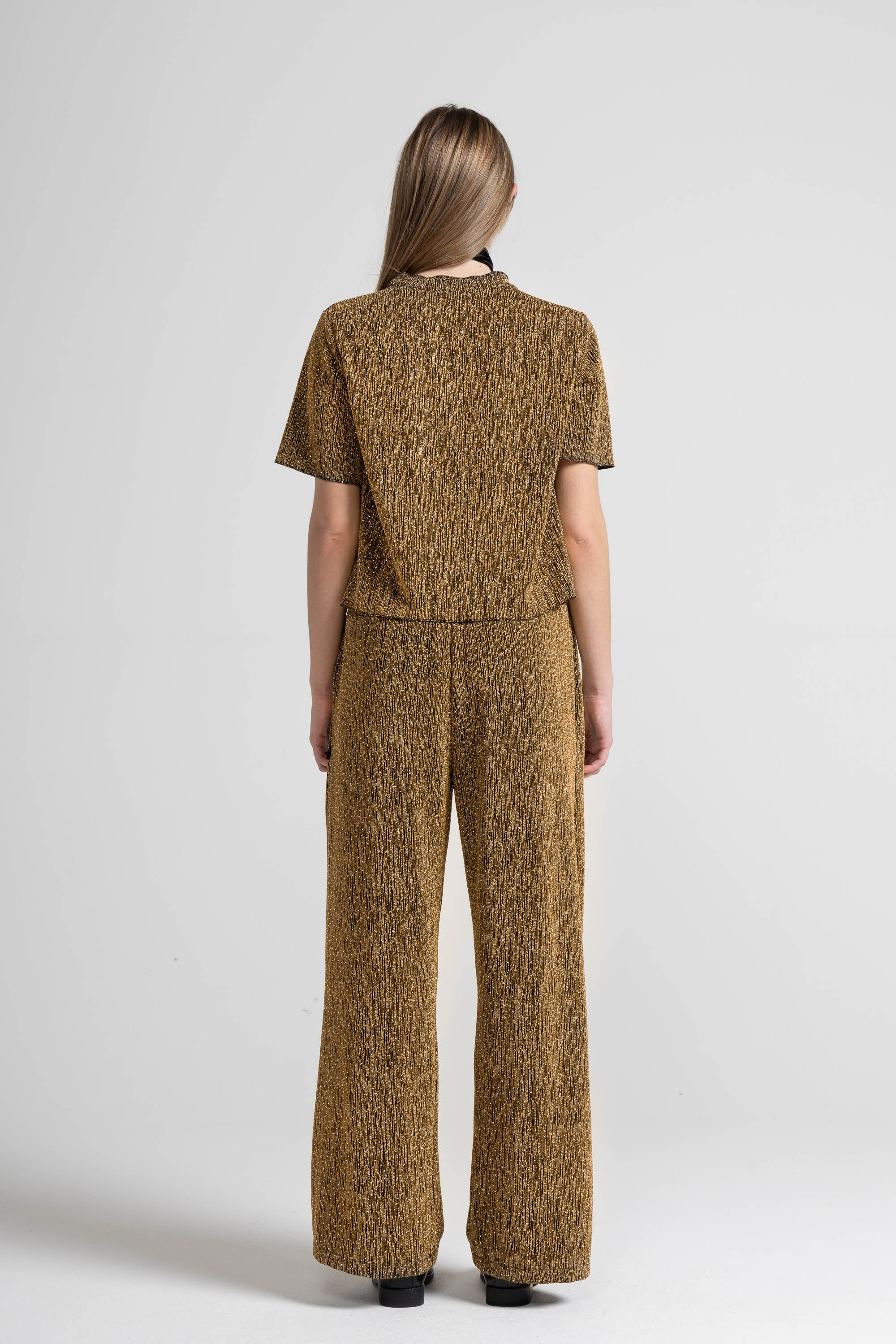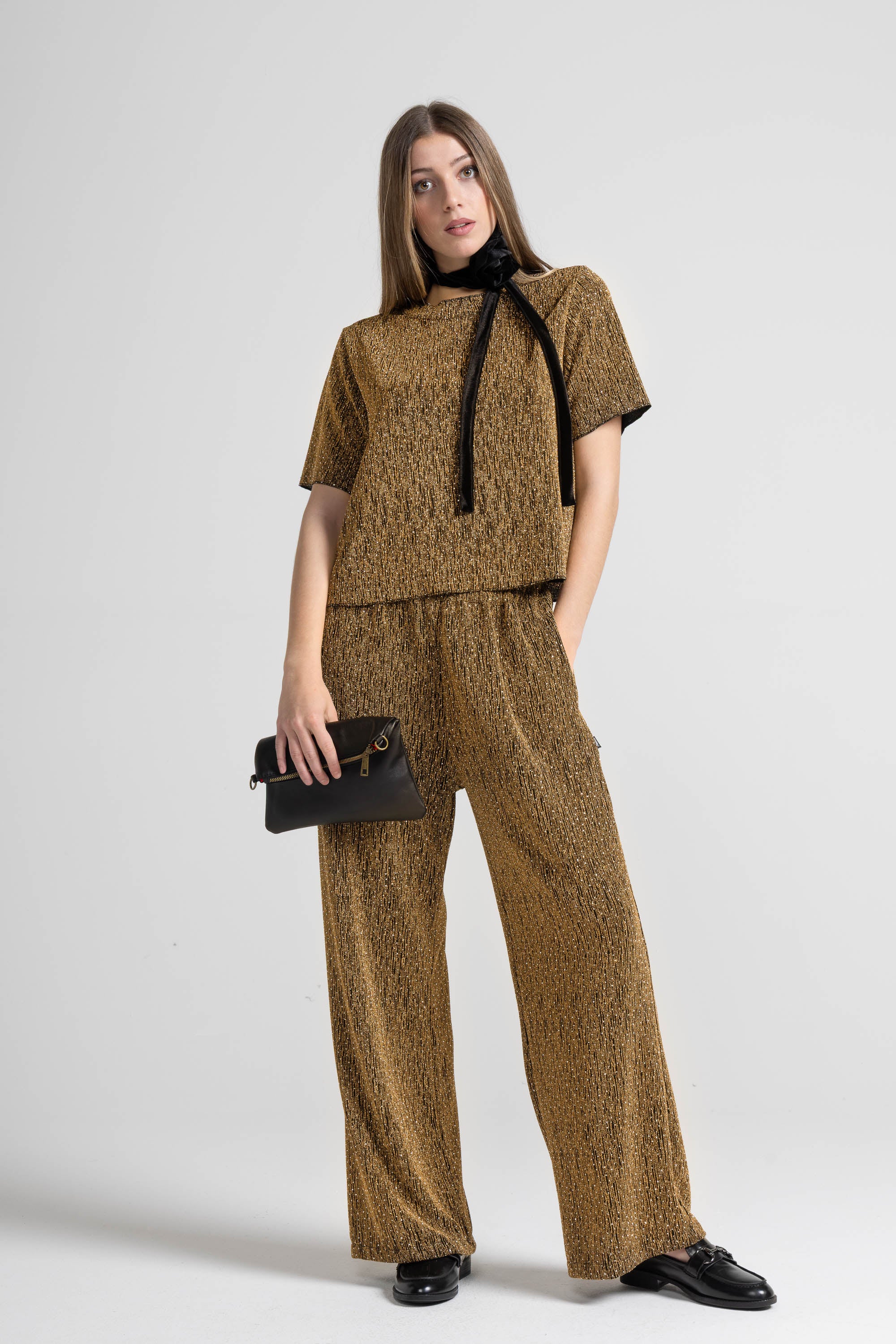 Il tessuto fluido accompagna i movimenti con naturalezza, mentre la texture scintillante aggiunge un tocco glamour ad ogni look.