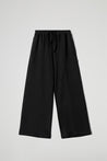 Pantalone ampio in tessuto fluido con vita elasticizzata e coulisse regolabile. Un capo dal design minimal e contemporaneo che unisce comfort e stile. La gamba larga e dritta crea un effetto morbido e raffinato, perfetto per look casual chic o per outfit da tempo libero.