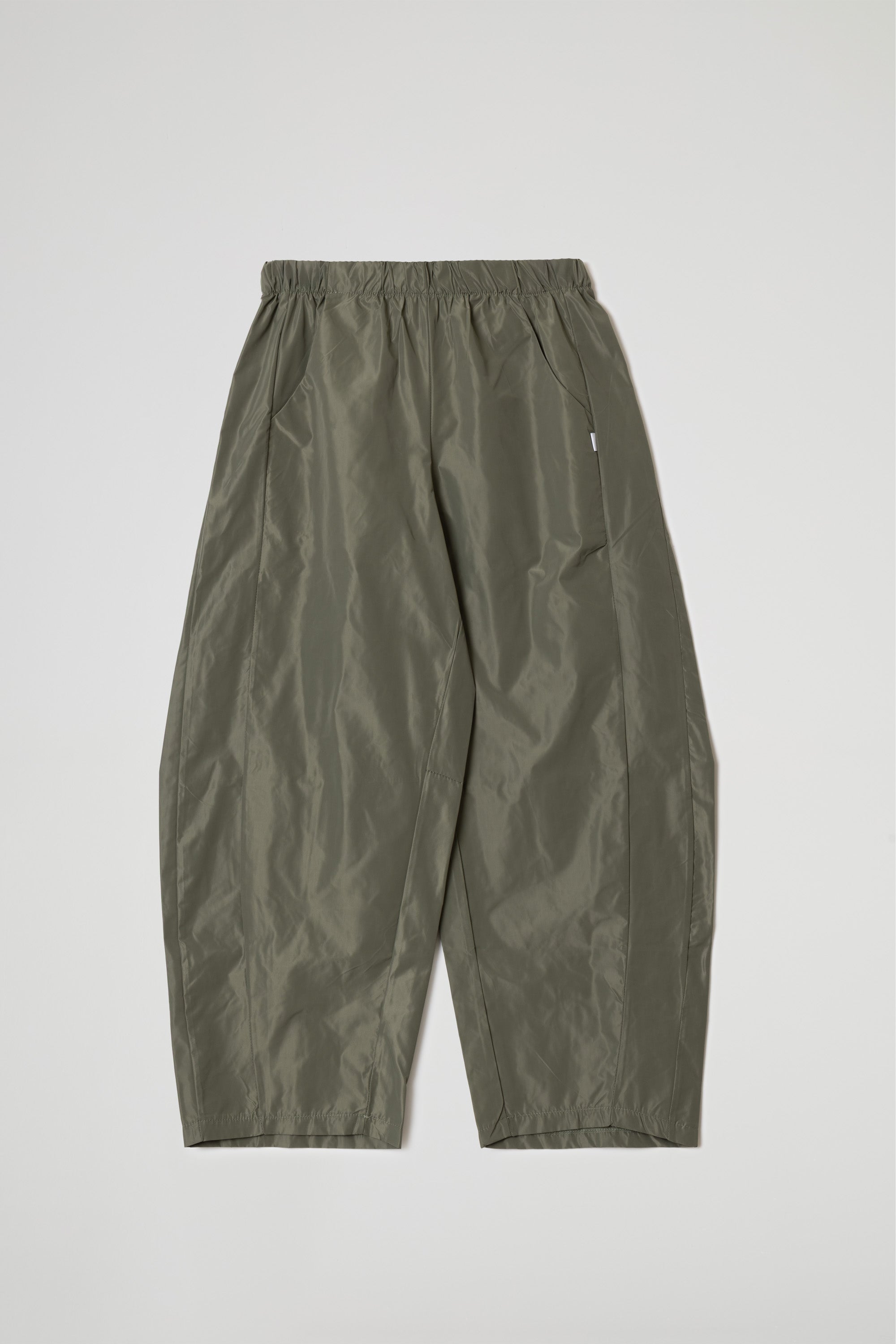 PANTALONE BARREL IN TESSUTO TAFFETA’ EFFETTO NACRE’, ELASTICO IN VITA, TAGLIO SULLA GAMBA, TASCHE ALLA’AMERICANA, LINEA BAGGY