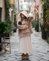 Giacca leggermente asimmetrica realizzata in morbida pelliccia sintetica effetto velluto ,linea oversize che garantisce comfort e libertà di movimento, ideale per look casual o urban chic.
