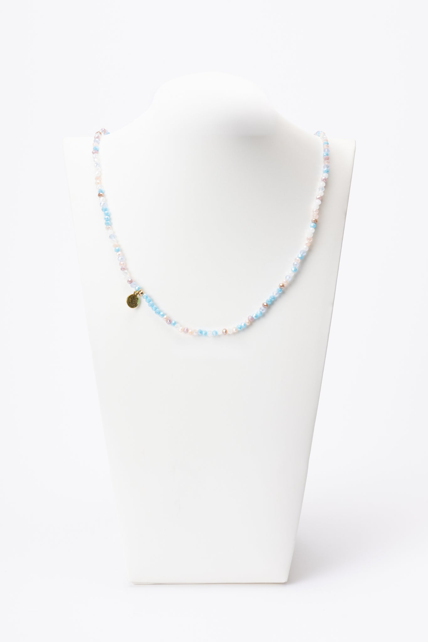 Beaded necklace with charms with Amelie hearts and "made with love" writing