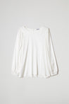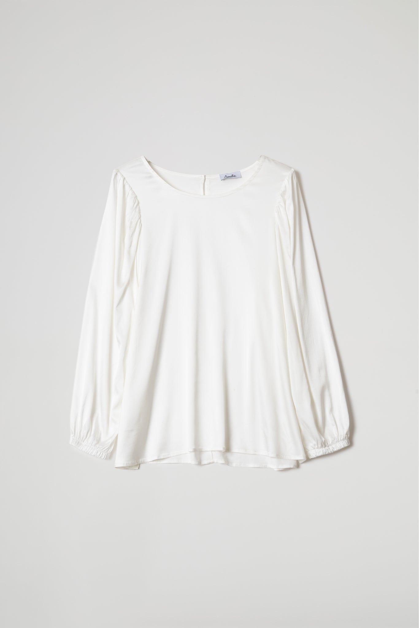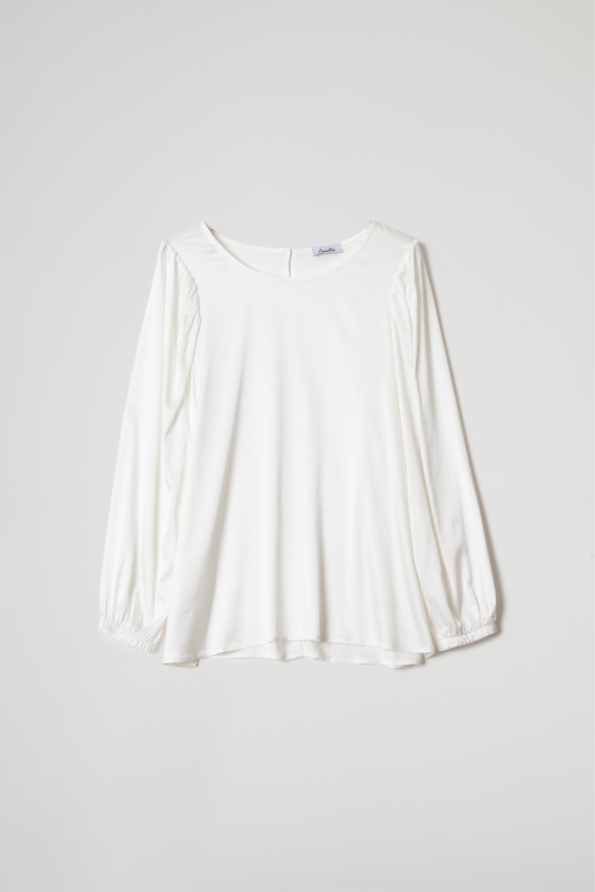 STRETCH VISCOSE AND ECOVERO SATIN BLOUSE, ROUND NECKLINE, LONG SLEEVES WITH ELASTICATED CUFFS, SLEEVES WITH LIGHT RUFFLES, SIDE SLITS. A-LINE LINE. COMFORT FIT WITH A PYJAMA EFFECT.