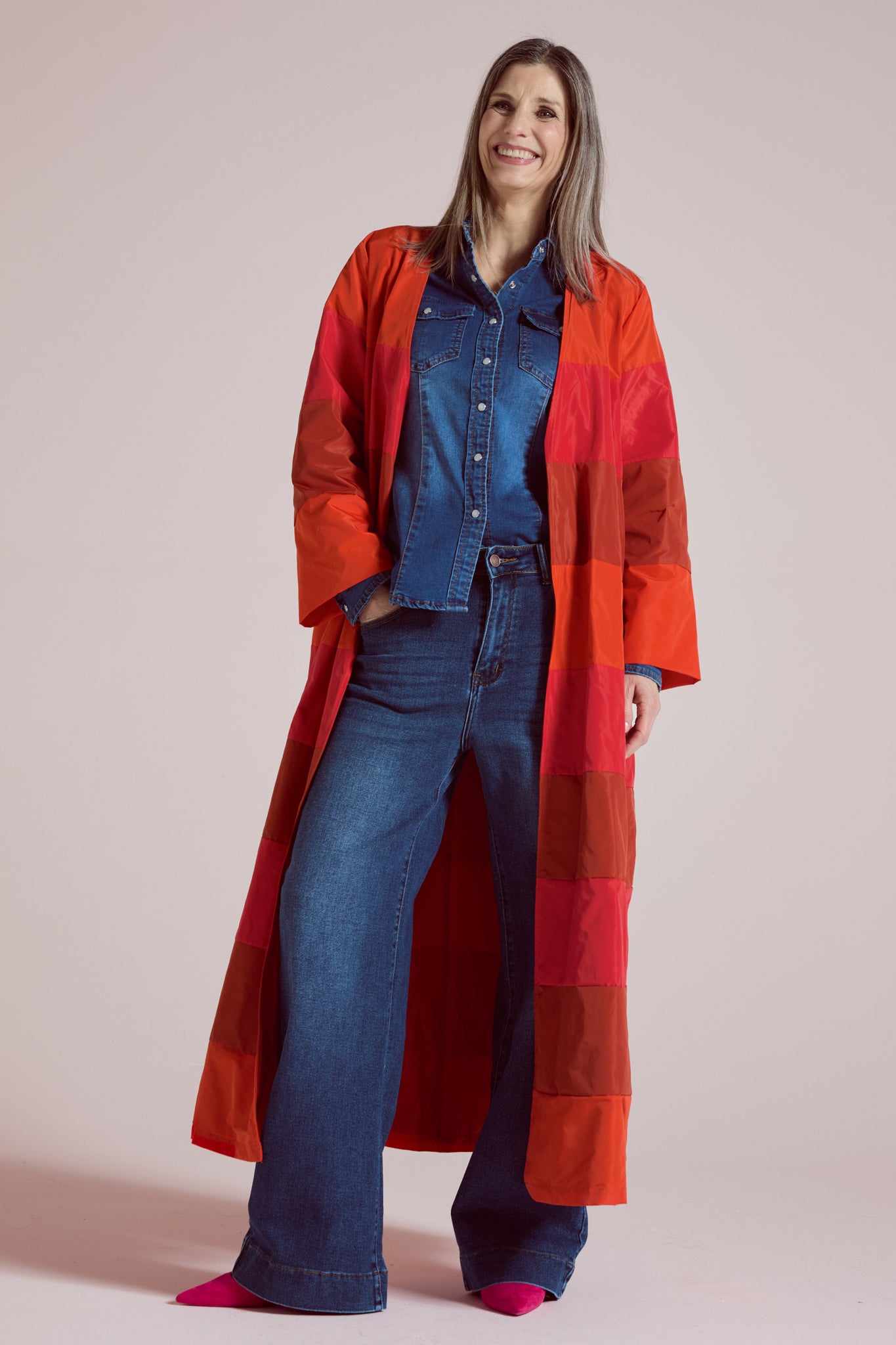 Jeans dal taglio pulito e contemporaneo, la vita regolare con passanti e chiusura classica definisce la silhouette, mentre la gamba dritta leggermente ampia regala comfort e un look attuale, facile da abbinare. Il lavaggio blu denim con leggere sfumature dona profondità al colore e un effetto vissuto ma elegante, I dettagli iconici del 5 tasche completano il modello: tasche anteriori con taschino, due tasche posteriori applicate, impunture a contrasto e fondo rifinito con un ampio orlo che valorizza la linea del pantalone e permette anche un piccolo risvolto.
