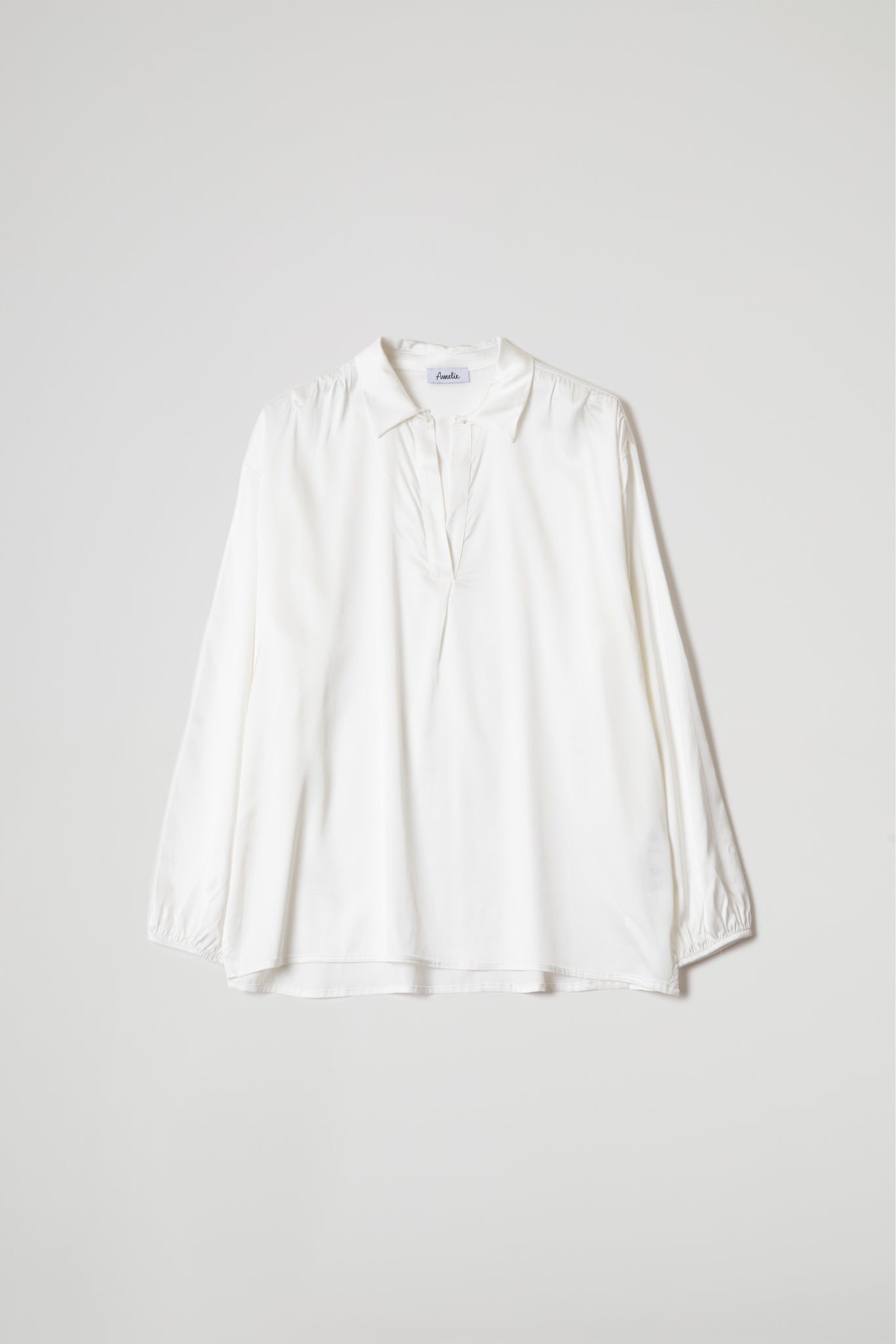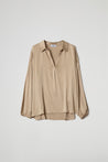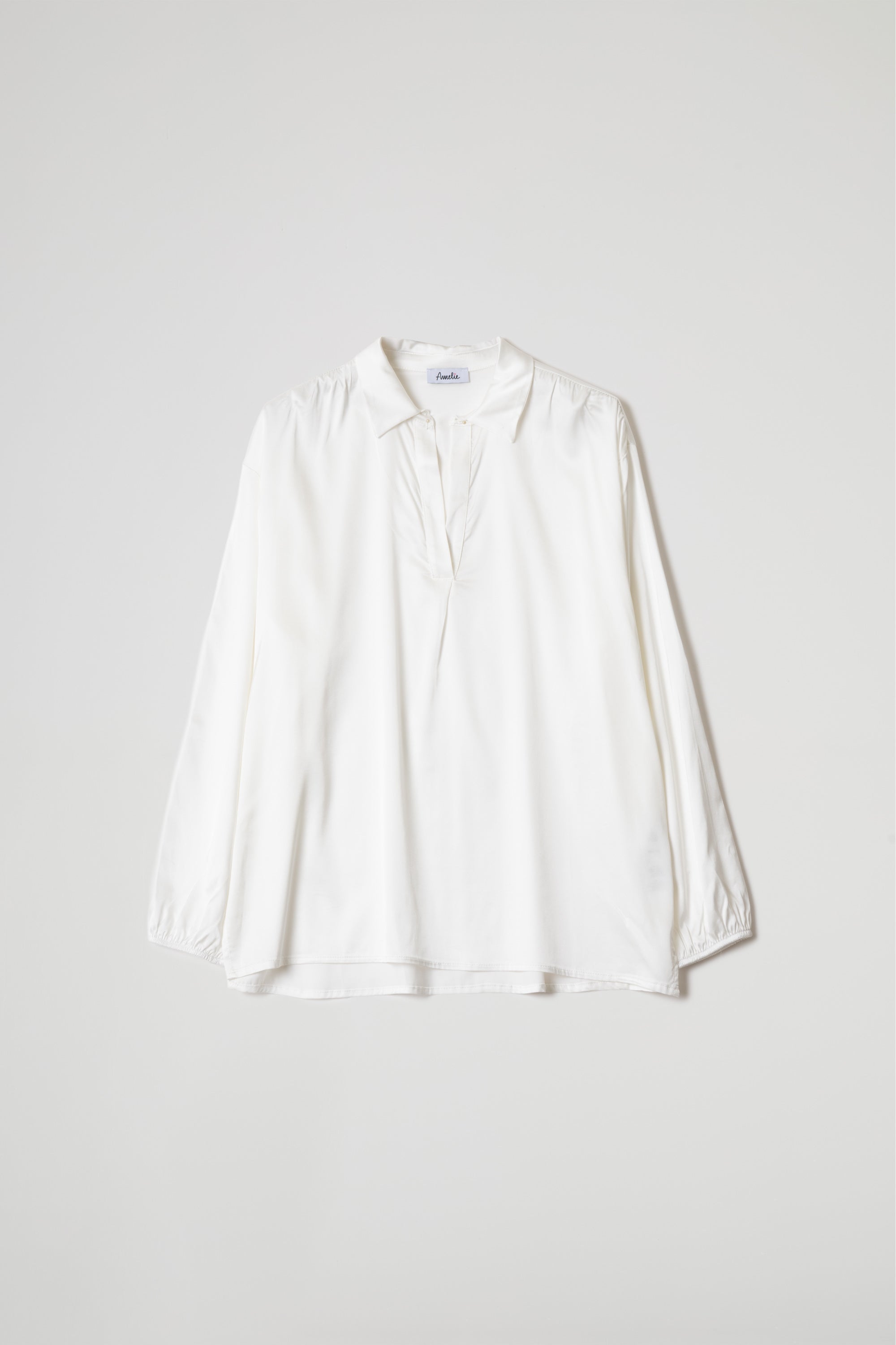 STRETCH VISCOSE AND ECOVERO SATIN BLOUSE, POLO NECKLINE WITH FRENCH COLLAR, LONG SLEEVES WITH ELASTICATION AT THE CUFF, SLEEVES WITH LIGHT RUFFLES. A-LINE. COMFORT FIT WITH A PYJAMA EFFECT.