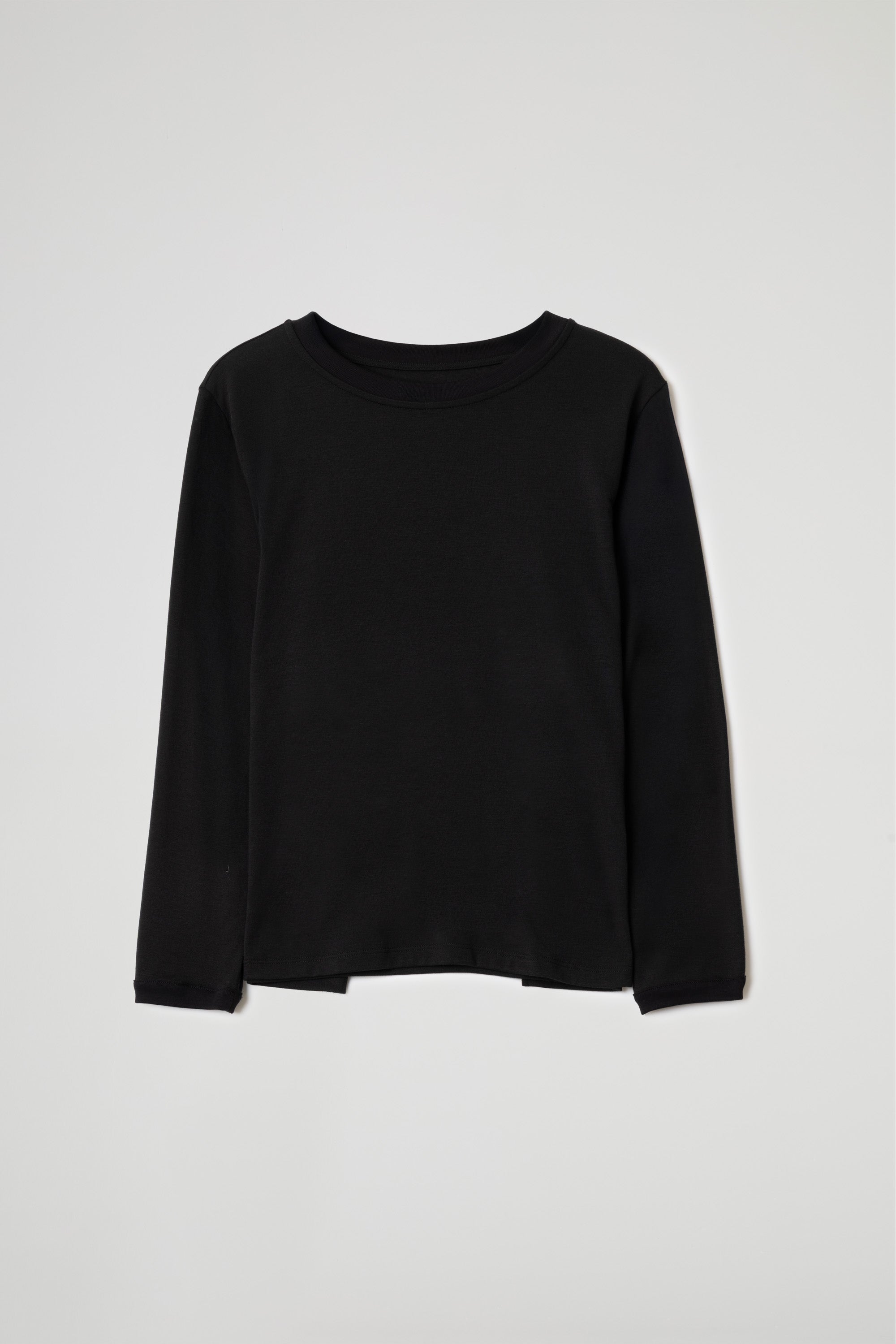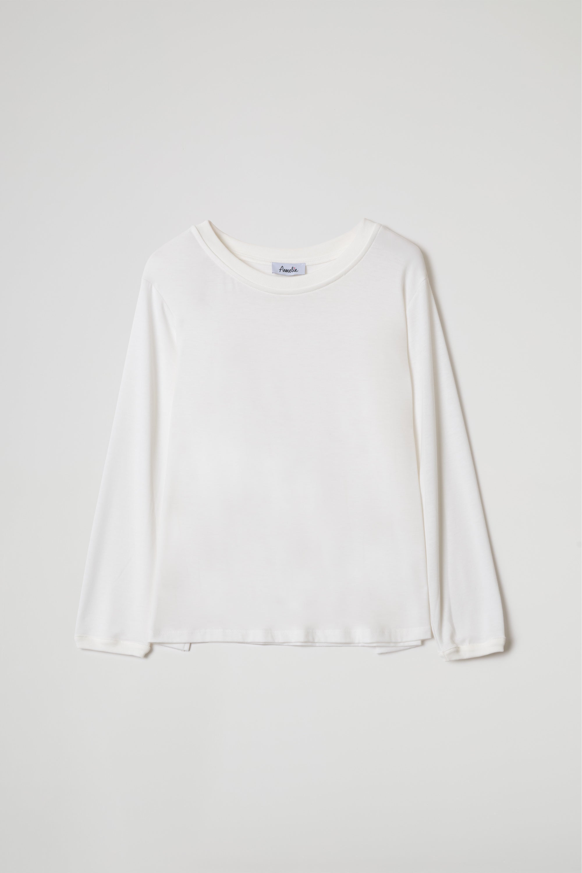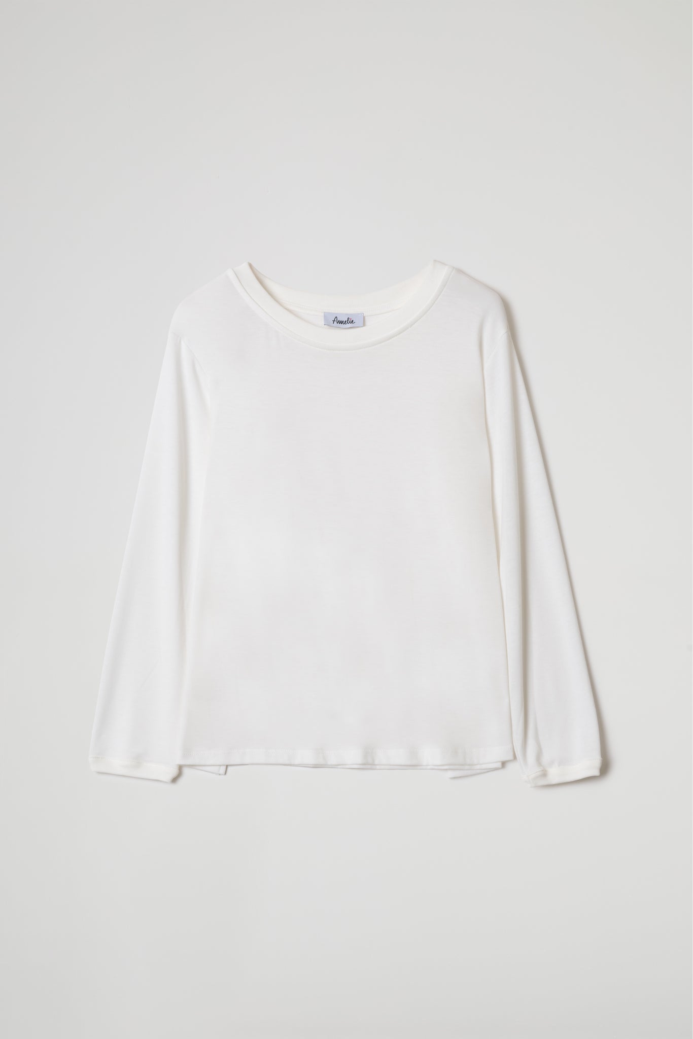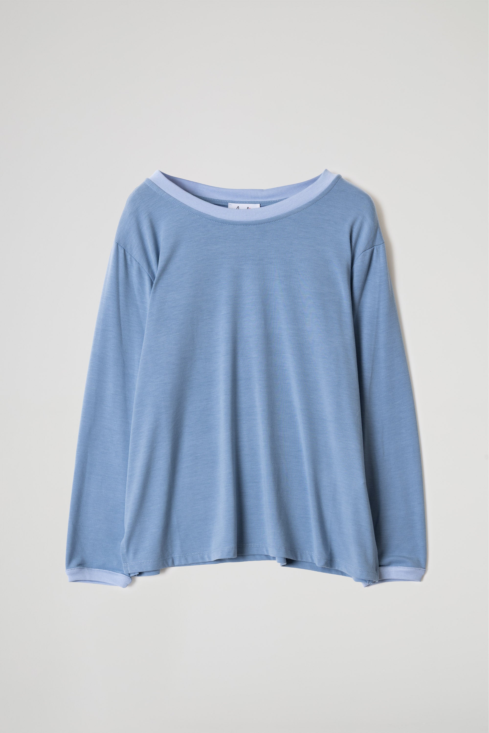 T-SHIRT SCOLLO A BARCA, LINEA BOXY, DETTAGLIO COSTINA TONO SU TONO SU POLSO E COLLO. LINEA CONFORTEVOLE.