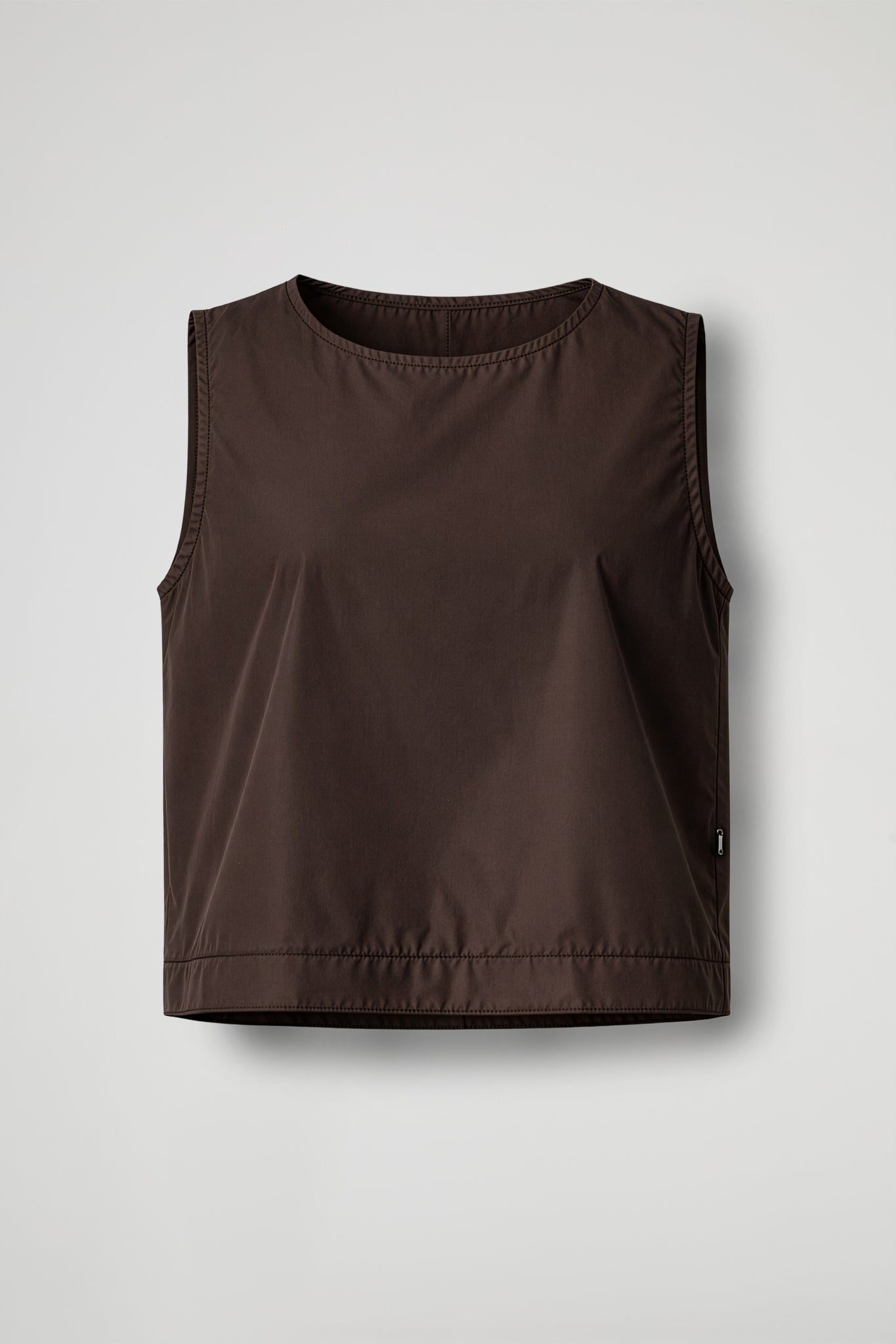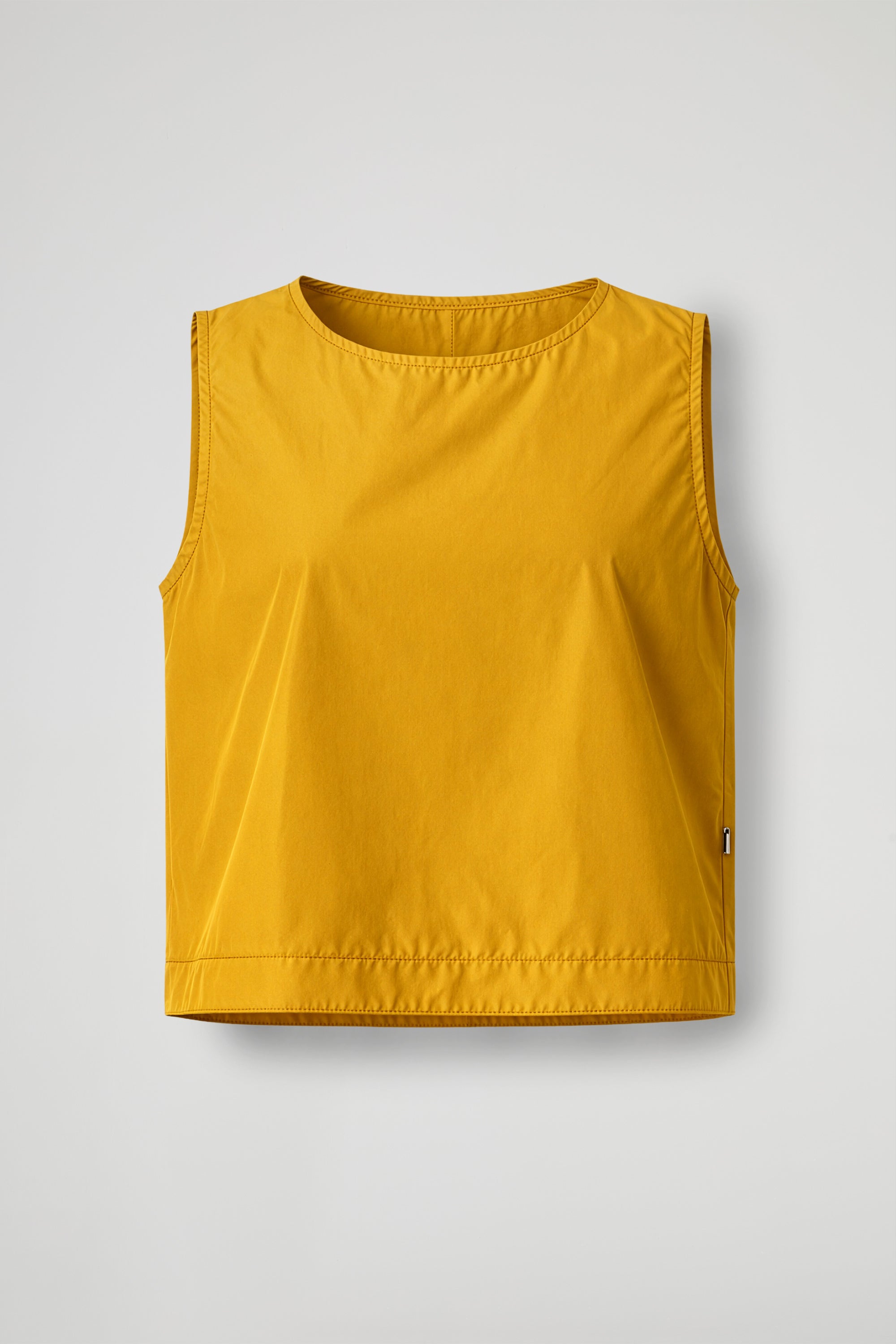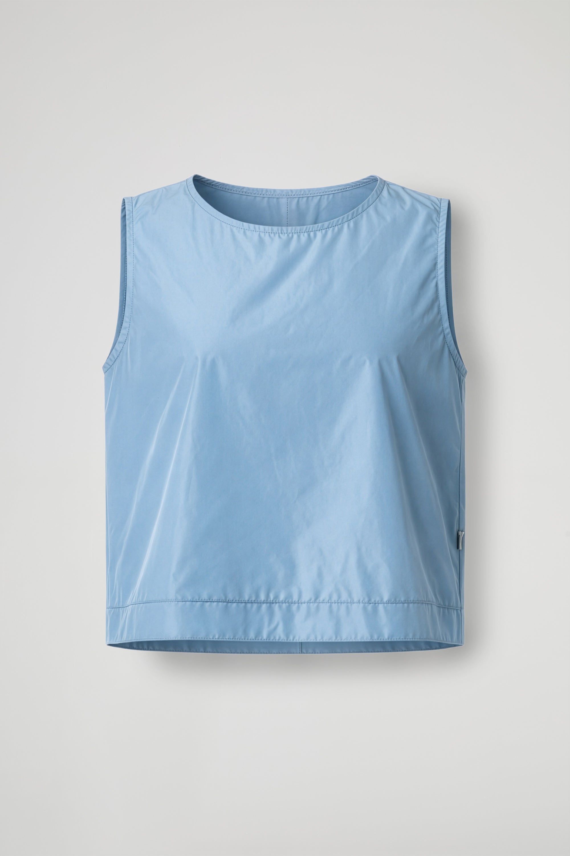 Top midi smanicato, collo rotondo, taglio boxy spacco sul retro.
